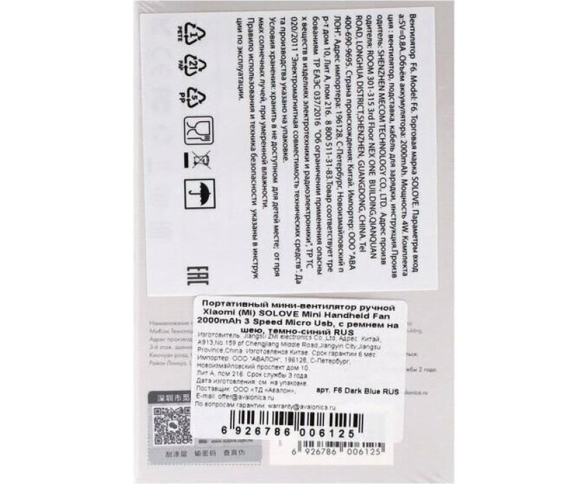 Вентилятор SOLOVE Вентилятор ручной F6DB, черный [f6 dark blue]