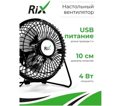 Вентилятор RIX Вентилятор бытовой настольный RDF-1501USB (черный)