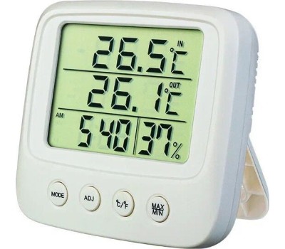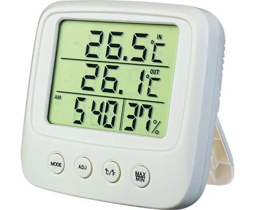 • Цифровой дисплей с одновременным; отображением времени, температуры; внутри помещения и на улице (2 темпера-; туры) и влажности внутри помещения; • Внешний датчик температуры; • Отображение времени: час, минута, 12/24; часа переключаемый; • Функция будильника