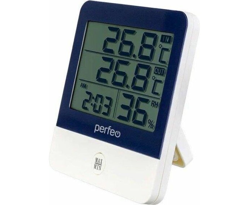 • Цифровой дисплей с одновременным; отображением времени, температуры; внутри помещения и на улице (2 темпера-; туры) и влажности внутри помещения; • Внешний датчик температуры; • Отображение времени: час, минута,; 12/24 часа переключаемый; • Функция будильника