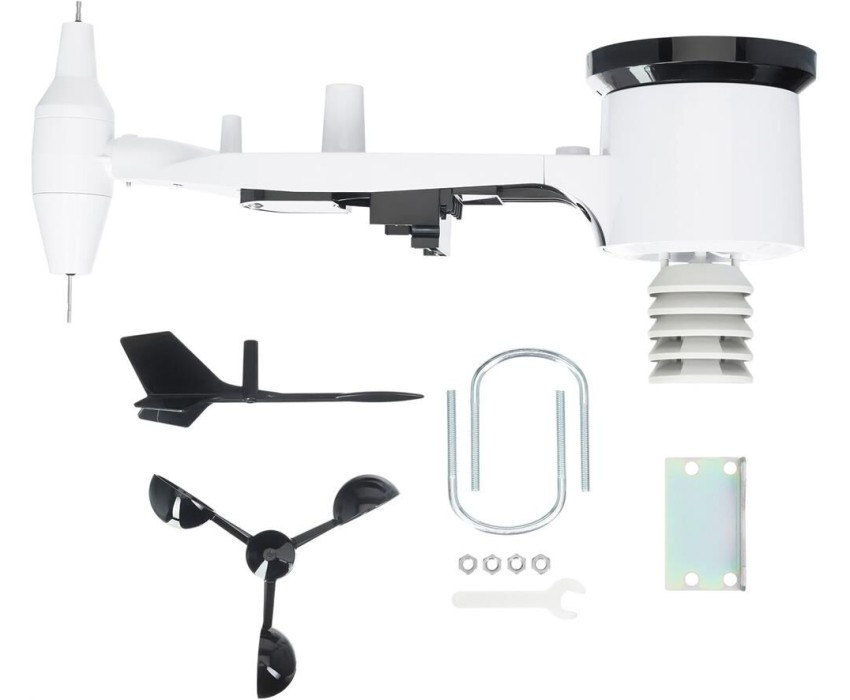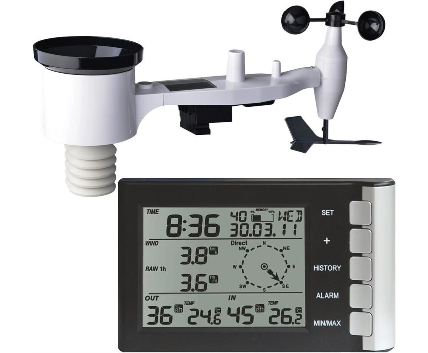 Тип: Погодная станция. Максимальное количество подключаемых датчиков: 1. Внешний термо/гидродатчик в комплекте: один. Радиус действия внешних датчиков: 100. Электропитание: батарейки. Тип батарей питания: AA. Индикатор батареи: есть. Часы: есть. Календарь: есть. Будильник: есть. Тип дисплея: монохромный. Цвет корпуса: серебристый. Внешний датчик ветра в комплекте: один. Внешний датчик уровня выпавших осадков: один. Определение точки росы: есть. Подсветка дисплея: есть. Страна производства: Китай. Гарантия: 999 мес.. Диапазон измерения внешней температуры: от -40°С до 60°С. Диапазон измерения влажности в помещении: от 10% до 99%. Диапазон измерения внешней влажности: от 10% до 99%. Диапазон измерения температуры в помещении: до 50°С. Внешние датчики: термо/гидродатчик х один, ветра х один, выпавших осадков х один. Диапазон измерения влажности: внешней от 10% до 99%, в помещении от 10% до 99%. Радиус действия датчиков: 100 м. Диапазон измерения температуры: внешней от -40°С до 60°С, в помещении до 50°С. Особенности: часы, будильник, календарь, точка росы, подсветка дисплея