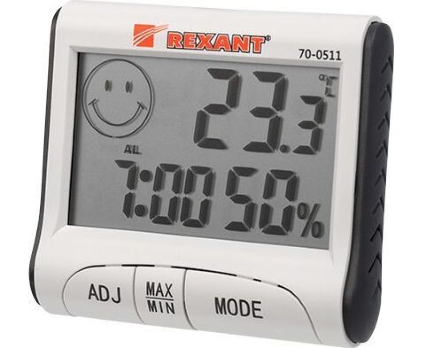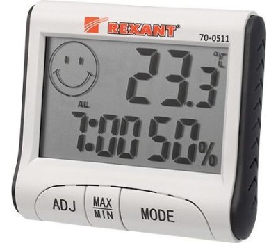 Термометры REXANT (70-0511) ТЕРМОГИГРОМЕТР КОМНАТНЫЙ С ЧАСАМИ И ФУНКЦИЕЙ БУДИЛЬНИКА