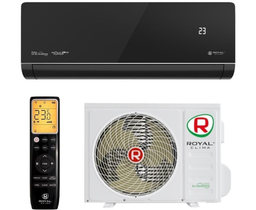 Сплит-система Royal Clima серии ROYAL SUPREMO NERO Full DC EU Inverter работает на современном, и безопасном фреоне R32 с высокой степенью эффективности использования. Отличные технические показатели и передовые технологические решения в новой серии 2024 года, взаимодействуют с широким функциональными возможностями. Встроенная система обработки воздуха включает в себя как фильтры грубой очистки, выполненные в виде сеток-пылесборников, так и фильтрующих элементов, препятствующих проникновению нерастворимых примесей в воздухе. В дополнение, во всей линейке кондиционеров присутствует встроенный ионизатор воздуха нового поколения. Компактный и тихий настенный кондиционер выполнен в черном цвете. Уникальная доработка компрессора обеспечивает заметное снижение расходов на электроэнергию, а также скорость набор необходимых температур. Простое и доступное управление через пульт или смартфон. Компания Royal Clima представляет флагманскую новинку 2024 года - серию инверторных кондиционер ROYAL SUPREMO NERO Full DC EU Inverter. Весь модельный ряд линейки выполнен в уникальном черном цвете, что придает единство с современными минималистичными интерьерами. Широкий набор функций и несколько вариантов управления делают данное устройство современным решением для микроклимата.