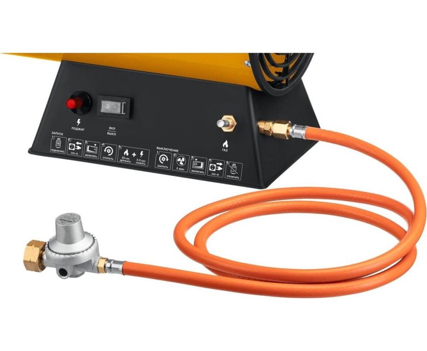 Тип газовая. Тип газа пропан, бутан. Тип поджига пьезо. Мощность, кВт 30. Воздушный поток, м3/ч 850. Расход топлива, кг/ч 2.0. Давление газа, бар/Мпа 0.15/1,5. Резьба присоединения шланга, дюйм 1/4". Объем отапливаемого помещени, до, м3 700. Двойные стенки есть. Контроль наличия пламени есть. Термопредохранитель есть. Класс защиты I. Напряжение, В/Гц 230~ /50. Масса изделия, кг 6.9. Масса в упаковке, кг 7.5. Габариты, см 57.9х23х34,8.