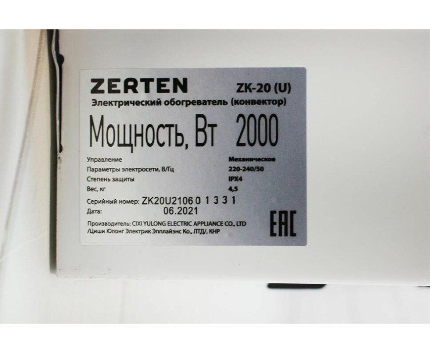 Конвектор ZERTEN ZK-20 (U) Конвектор электрический