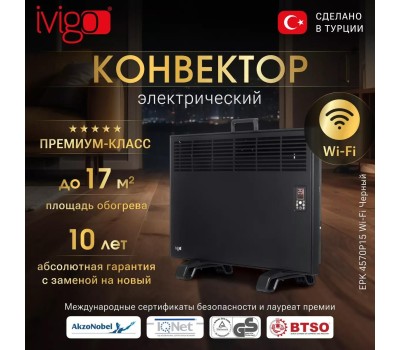 Конвектор IVIGO Электрический конвектор EPK4570P15 Черный с управлением по WI-FI