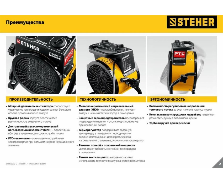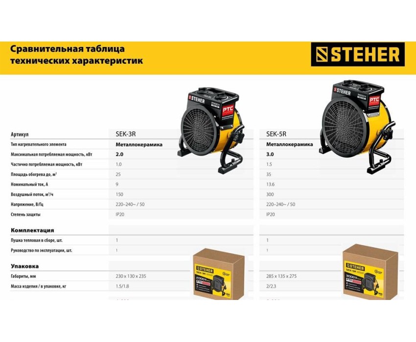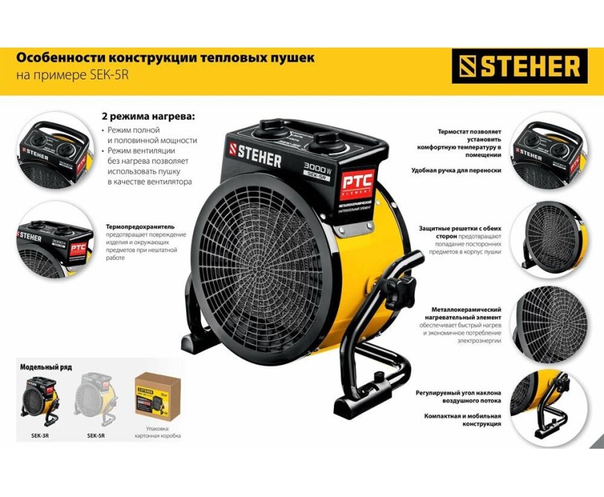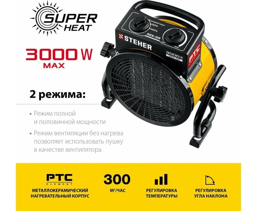 Пушка тепловая STEHER SEK-5R Электрическая тепловая пушка 3 кВт, МКН