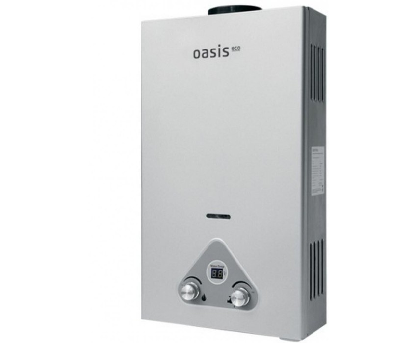 Дисплей электронный Цвет серый Мощность 16 кВт Производительность 6 л/мин Способ нагрева газовый Тип водонагревателя проточный Управление механическое/ Oasis Eco K-16/S — газовый проточный водонагреватель, предназначенный для горячего водоснабжения помещений, оборудованных дымоходом. Работает на природном газе (возможен перевод устройства на сжиженный газ). автоматический розжиг при открытии крана горячей воды (работает от батареек); открытая камера сгорания; медный теплообменник; сетчатый фильтр для воды; ЖК-индикатор температуры воды; регуляторы пламени и протока воды.