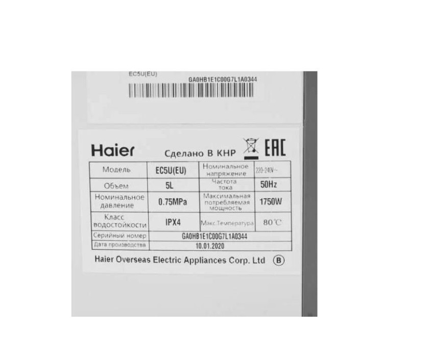 Водонагреватель накопительный электрический HAIER EC5U(EU)