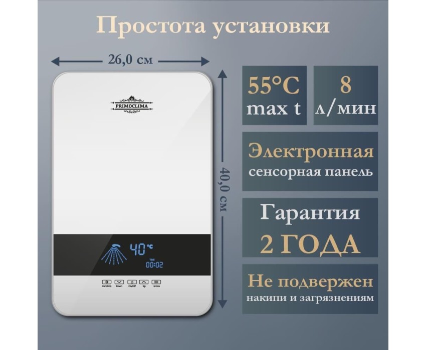 Водонагреватель проточный PRIMOCLIMA AQUA 10.0 кВт/380В, белый