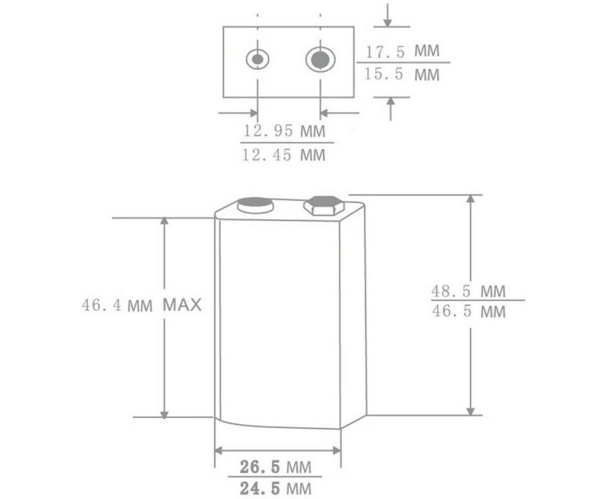 Крона (6LR61, 6LF22, 6KR61, 1604A), 5014, BLOCK / КРОНА / 6F22 / 9В, Крона перезаряжаемая (HR22/9V)
