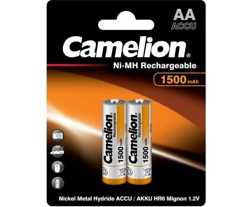 Элементы питания CAMELION (3510) AA-1500MAH NI-MH BL-2 (NH-AA1500BP2, аккумулятор,1.2В)