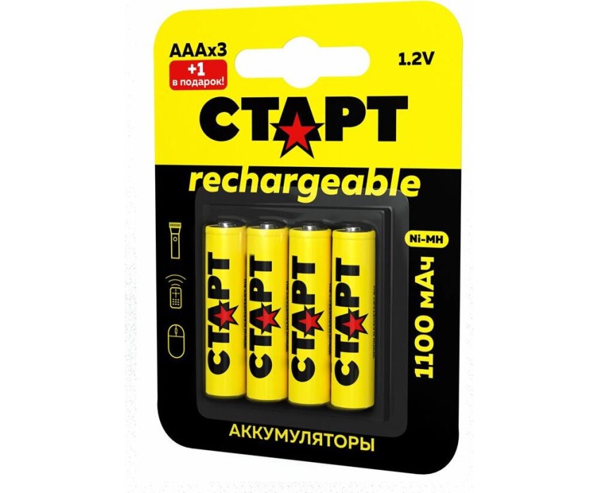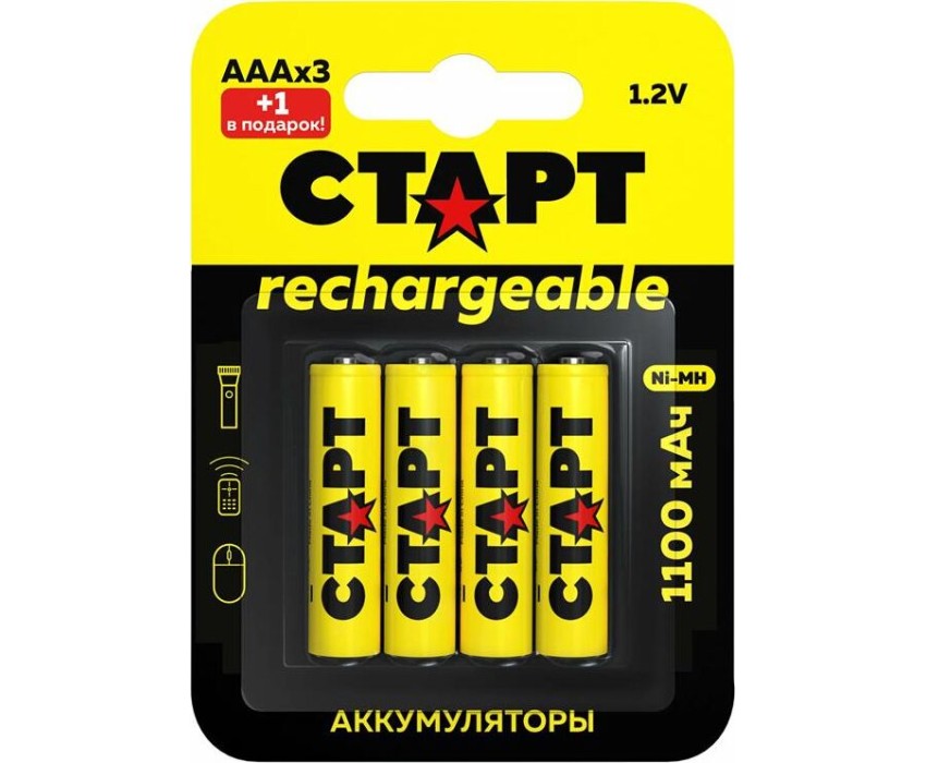 Аккумулятор СТАРТ (19344) HR03 ААА 1100mAh Ni-MH BL3+1