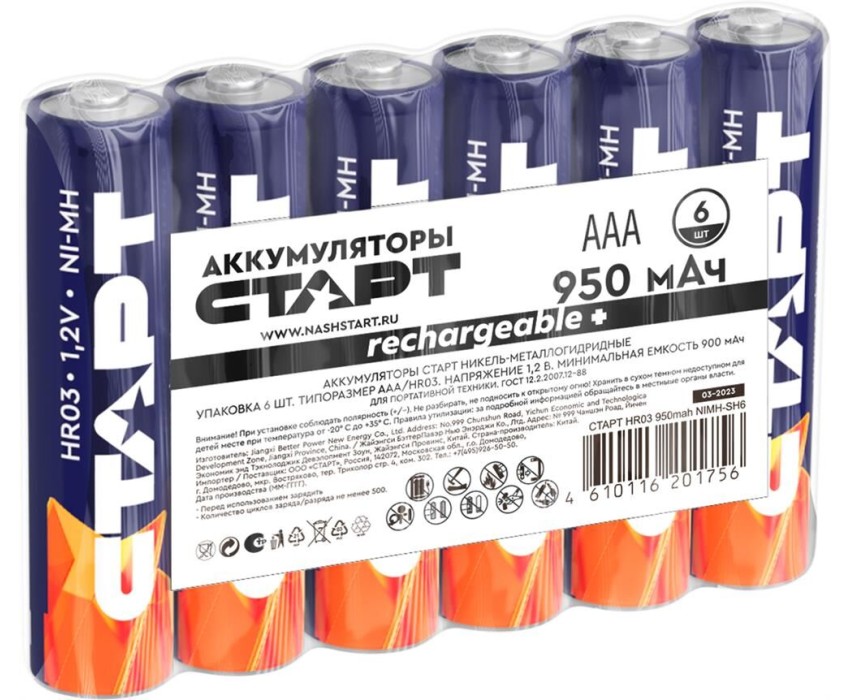 Аккумулятор СТАРТ (17566) HR03 ААА 950mah NIMH-SH6