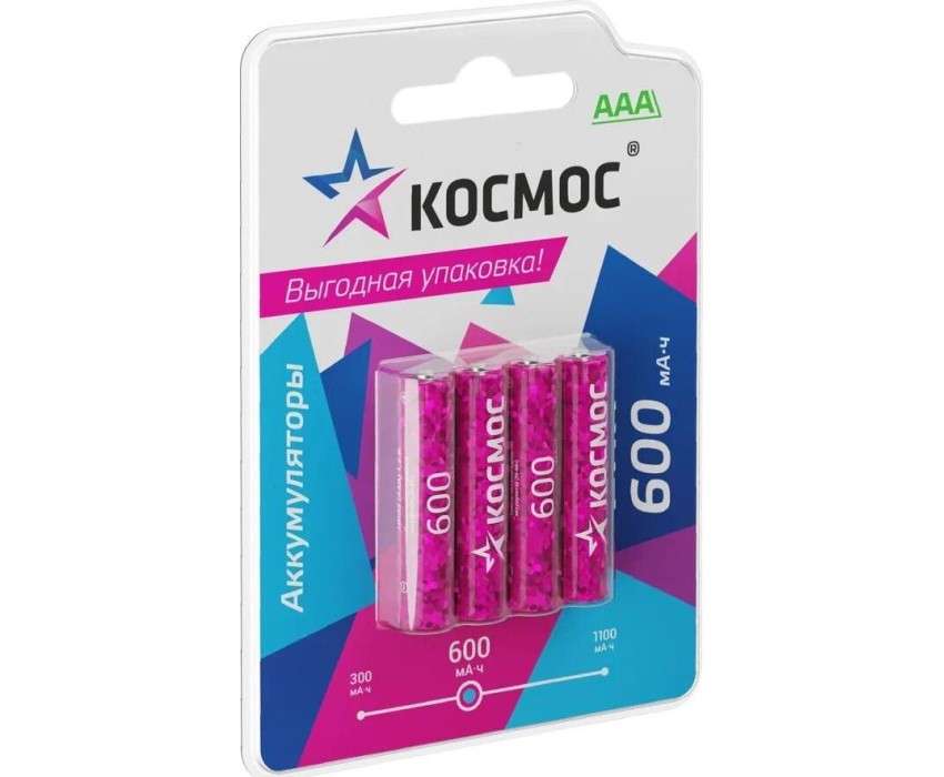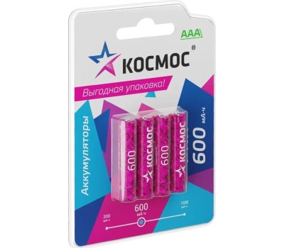 Аккумулятор КОСМОС KOCR03NIMH600mAh4BL фуксия