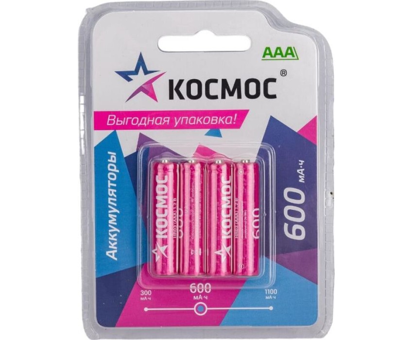 Ni-Mh (никель-металлогидридные) аккумуляторы Космос – заменяют обычные батарейки типоразмера ААА (также называют «мизиньчиковые», на приборах-потребителях может обозначаться как LR03, R03, UM4). Быстро окупятся - можно заряжать сотни раз, экономя на обычн