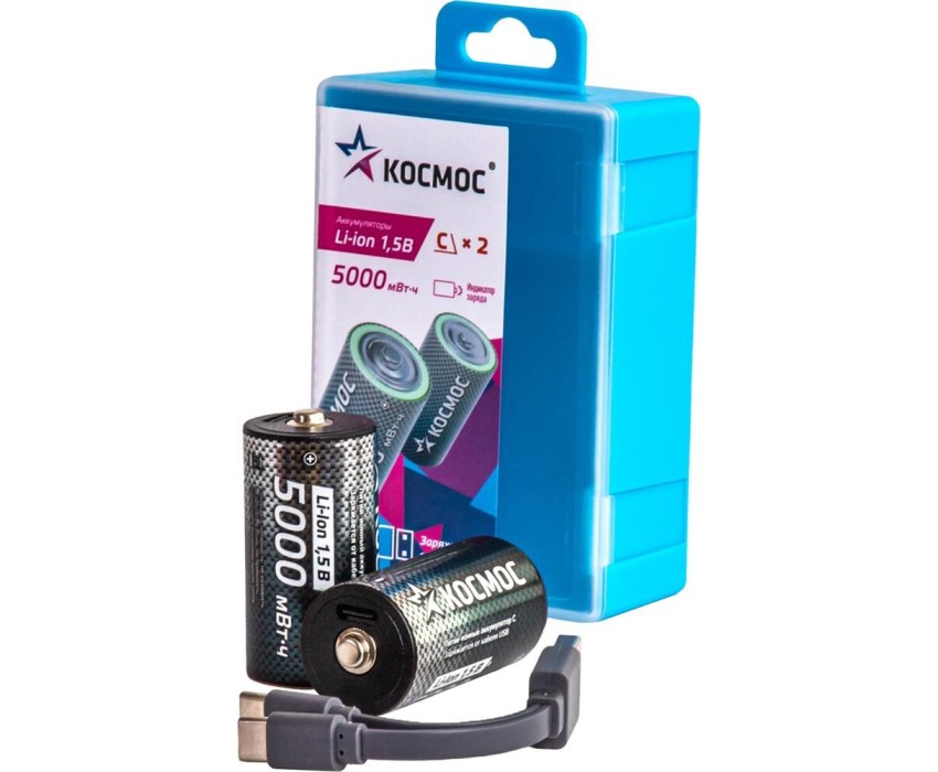 Литий-ионный аккумулятор формата C (R14). Популярный формат батареек теперь в виде li-on аккумулятора! Благодаря Li-ion технологии данный аккумулятор имеет более высокую энергоемкость, отсутствие саморазряда и "эффекта памяти", долгий срок службы, а также благодаря встроенному гнезду зарядки USB-C обладает лучшей практичностью и удобством в использовании. В практичном формате пластикового бокса. Напряжение 1,5В, ёмкость 5000 mAh, провод в комплекте!
