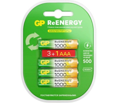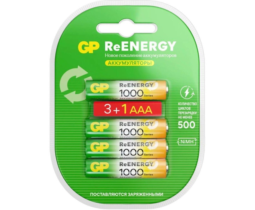 Перезаряжаемые аккумуляторы GP ReEnergy 100AAAHC AAA, емкость 930 мАч - 4 шт. в промо-упаковке 3+1