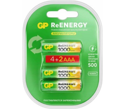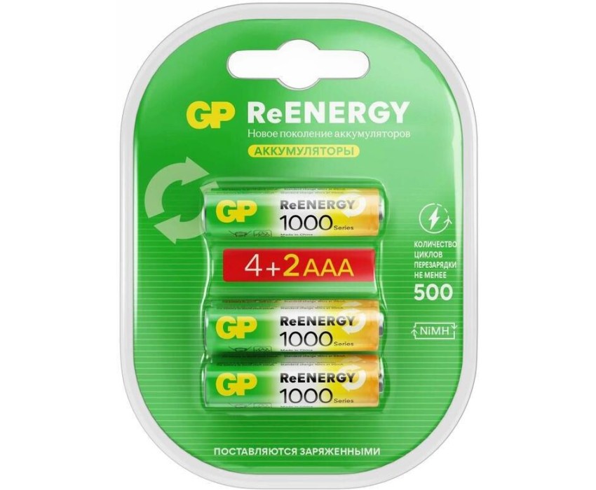 Перезаряжаемые аккумуляторы GP ReEnergy 100AAAHC AAA, емкость 930 мАч - 6 шт. в промо-упаковке 4+2