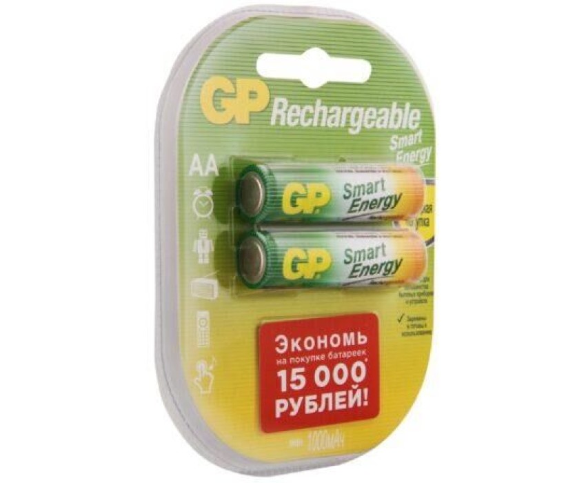 Перезаряжаемые аккумуляторы GP Smart Energy AA, емкость 1000 мАч - 2 шт. в блистере