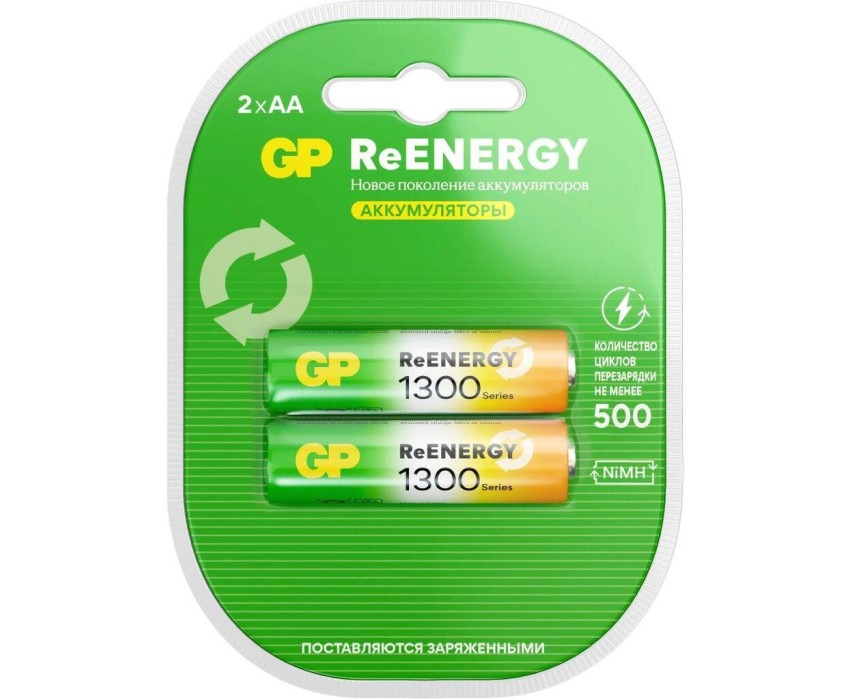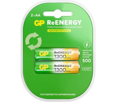 Перезаряжаемые аккумуляторы GP ReEnergy 130AAHC AA, емкость 1300 мАч - 2 шт. в клемшеле