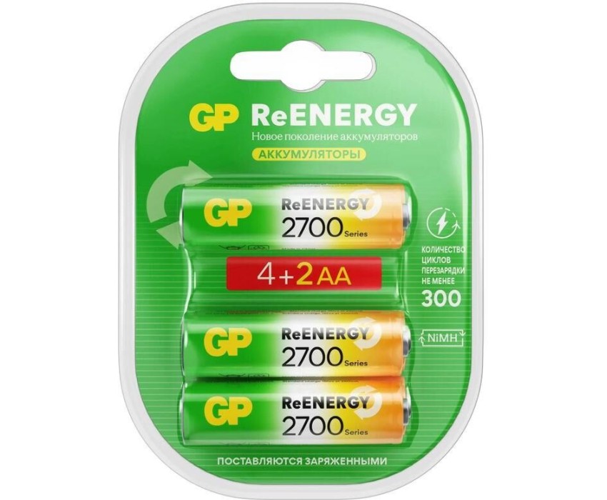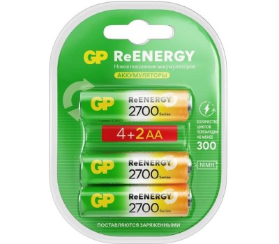 Перезаряжаемые аккумуляторы GP ReEnergy 270AAHC AA, емкость 2650 мАч - 6 шт. в промо-упаковке 4+2