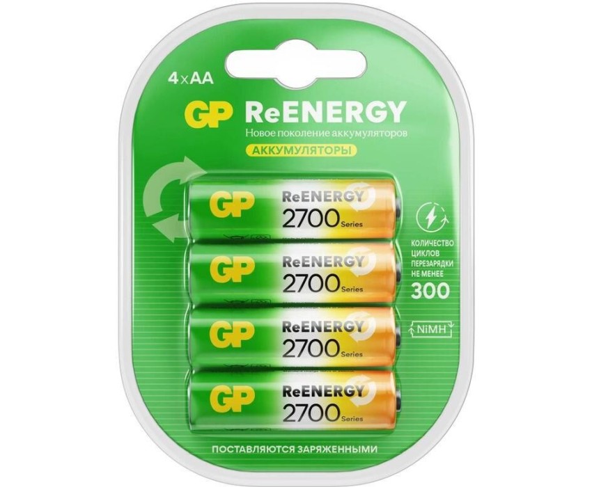 Перезаряжаемые аккумуляторы GP ReEnergy 270AAHC AA, емкость 2650 мАч - 4 шт. в клемшеле