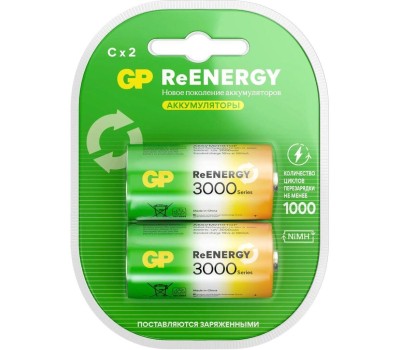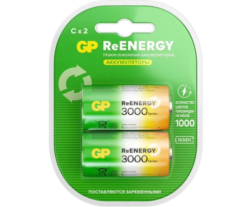 Перезаряжаемые аккумуляторы GP 300CHC типоразмера C, емкость 3000 мАч - 2 шт. в клемшеле