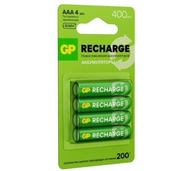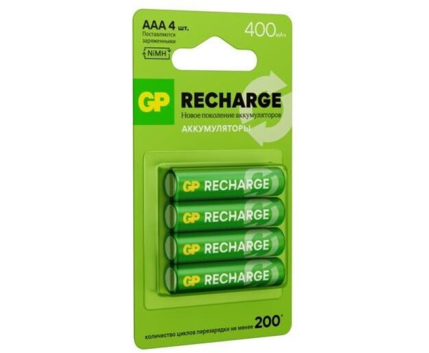 Перезаряжаемые аккумуляторы GP RECHARGE AAA, емкость 400 мАч - 4 шт. в блистере