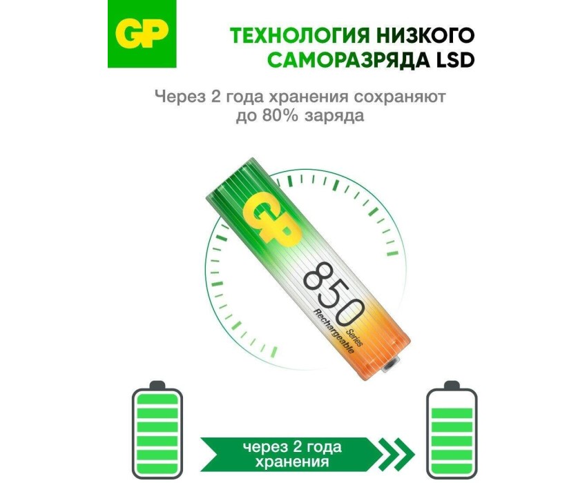 Универсальный и надежный источник питания для различных электронных устройств – это аккумуляторные мизинчиковые батарейки ААА (HR03) Ni-Mh с энергоемкостью 850 мАч бренда GP. В комплекте две штуки. Они работают безупречно в самых разных ситуациях, делая вашу технику по-настоящему эффективной. Современные гаджеты стали неотъемлемой частью нашей жизни: компьютерные мышки, клавиатуры, фонари, микрофоны; диктофоны, MP3-плееры, часы, цифровые камеры; энергоемкие электро аппараты, фотоаппараты, фотовспышки