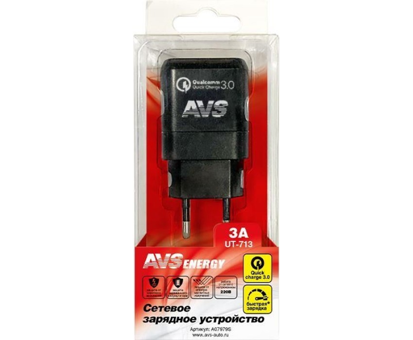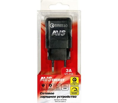 USB сетевое зарядное устройство / блок зарядки AVS 1 порт UT-713 Quick Charge (1.5-3A), без кабеля, сетевое зарядное устройство - 1 шт.