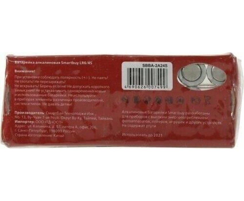 Элементы питания SMARTBUY (SBBA-2A24S) LR6-4S в упаковке 24шт (цена за 1шт)