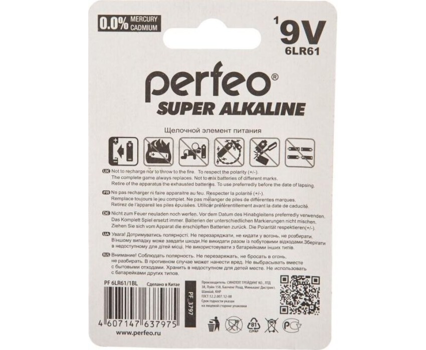 Элементы питания PERFEO 6LR61-1BL SUPER ALKALINE (20)