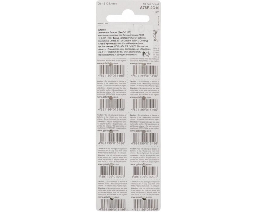 Элементы питания GP (3150) A76-BC10 (LR44, G13, V13GA) (A76FRA-2C10)