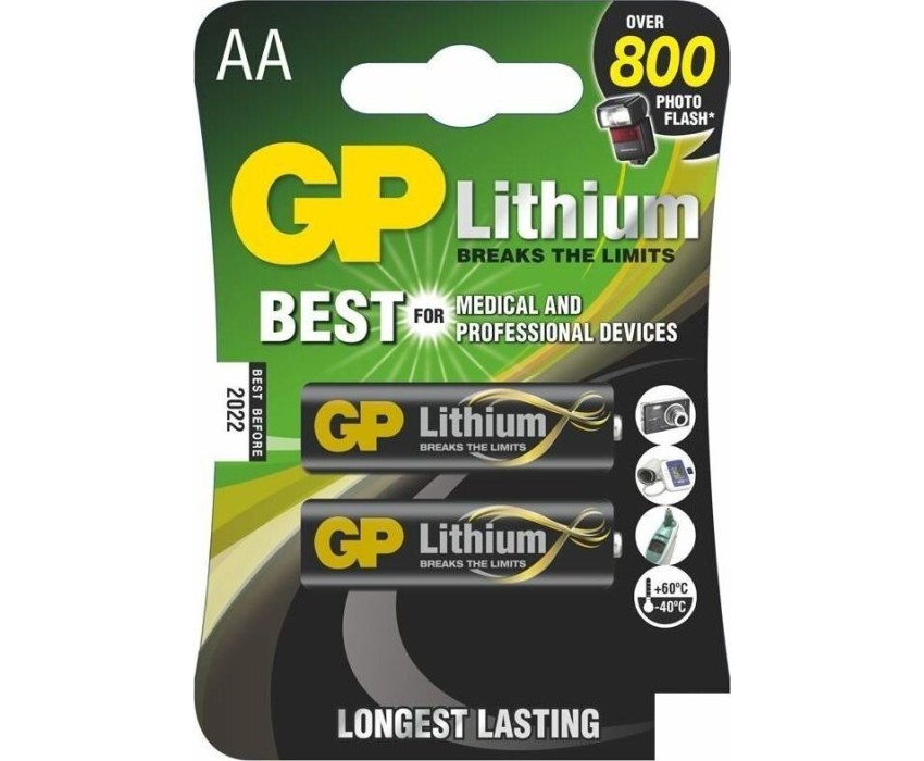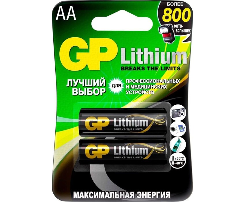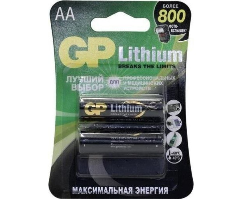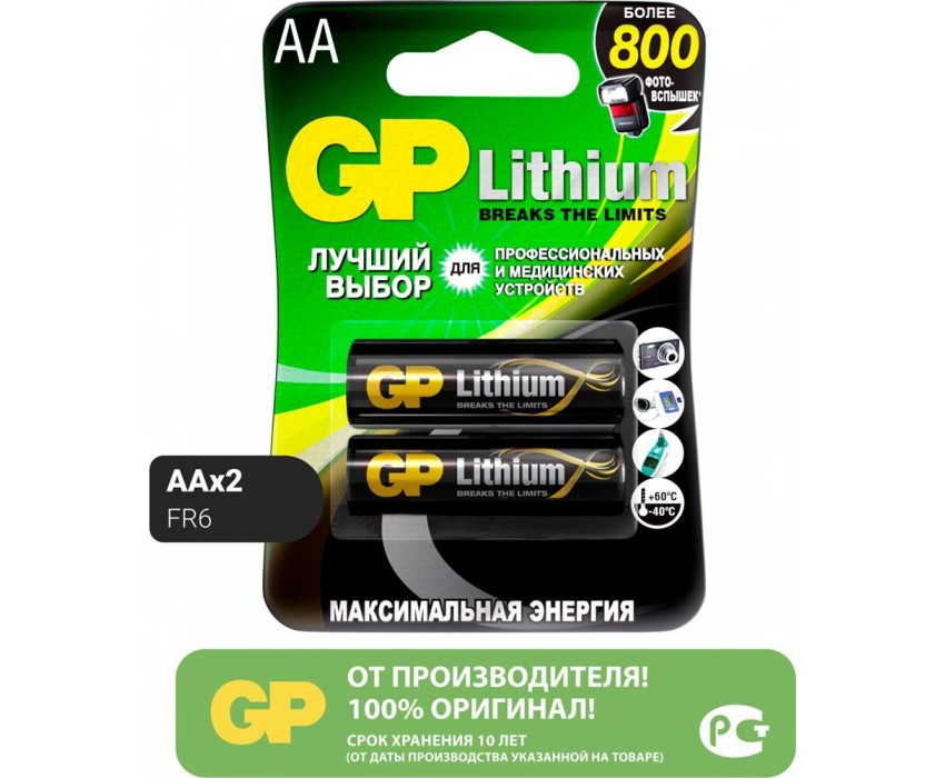 Тип батарейки AA Аккумуляторы того же типа Батарейка Литиевая Тип оборудования AA (R6/LR6/FR6/ZR6, пальчиковые) Напряжение питания 1.5 В