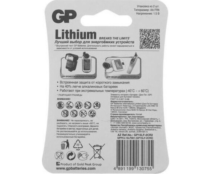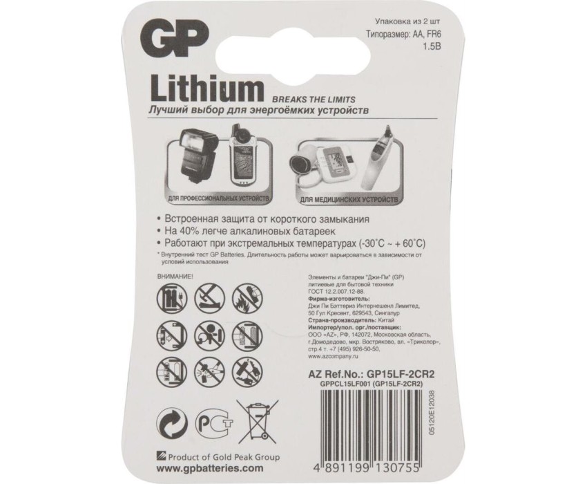 Элементы питания GP (2780) 15LF-2CR2 (AA, LR6)