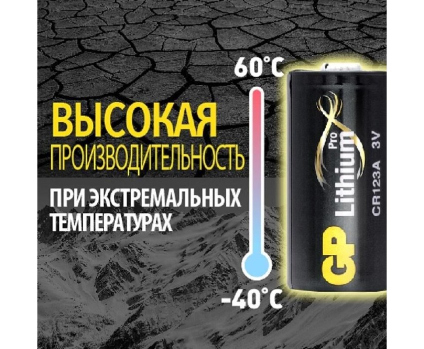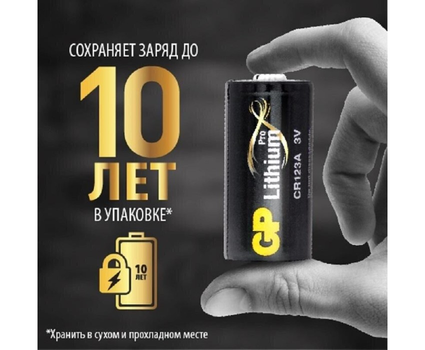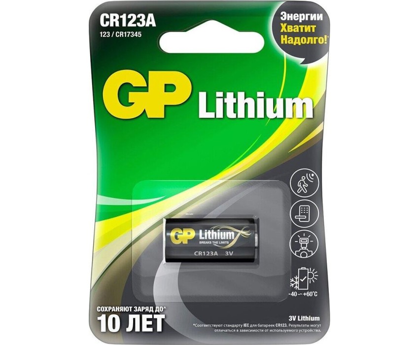 GP Photo Lithium – лучший выбор для энергоемких устройств. Батарея создана, прежде всего, для использования в фотокамерах, которые традиционно нуждаются в большом количестве энергии. Также может использоваться в фонариках и некоторых других бытовых устройствах в качестве замены батарейкам DL123A. Один из важнейших плюсов литиевых элементов питания – стабильная работа в широком диапазоне температур: от –30 до +65С. Размер: CR123A (DL123A), GP СR123A. Химический состав: Литий. Номинальное напряжение: 3 В. Размеры: 34,5х17 мм. Вес: 21 г. Температура эксплуатации: от –30 до +65°С. Количество: 1 шт. Упаковка: Блистер.