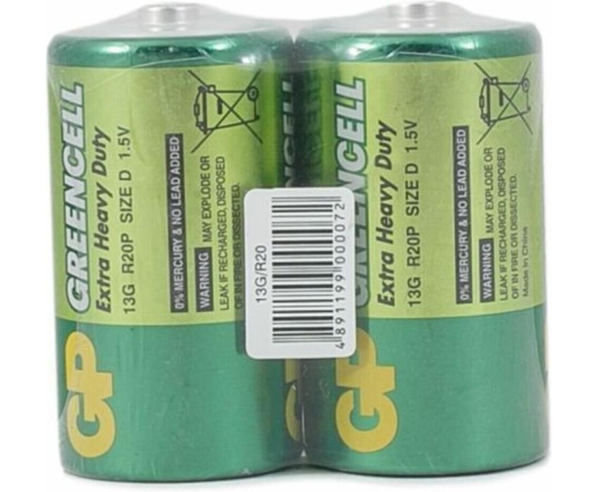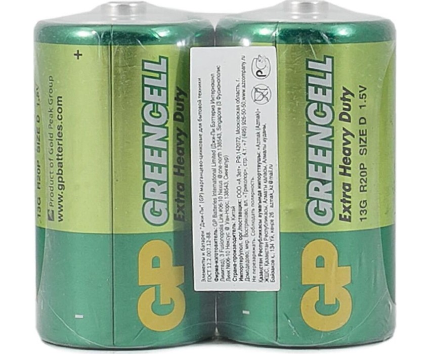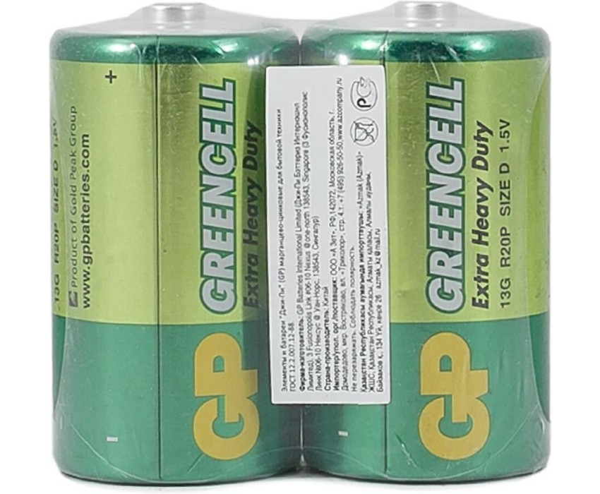 Солевые элементы питания GP являются надежным источником питания и отлично подходят для устройств со средним и низким потреблением энергии. Солевые батарейки GP не содержат вредных примесей и тяжелых металлов, поэтому считаются экологически чистым продуктом для окружающей среды и здоровья человека. Срок годности - 2-3 года. Размер: D (R20), GP13G. Химический состав: Солевая. Номинальное напряжение: 1.5 В. Размеры: 34x61 мм. Вес: 96 г. Температура хранения: не выше 25С. Температура эксплуатации: от 0С до +45С. Количество: 2 шт. Упаковка: Шринк.