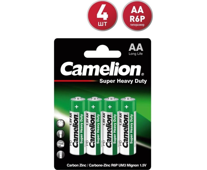 Батарейки солевые R6P-BP4G, напряжение 1,5В, емкость 1200мА*ч, кол-во в упаковке 4 шт., размер упаковки 84x114x15 мм, использовать при температуре от -18 до + 55 °C, хранить в сухом помещении при температуре от +15 до +25°C. Срок хранения 3 года.