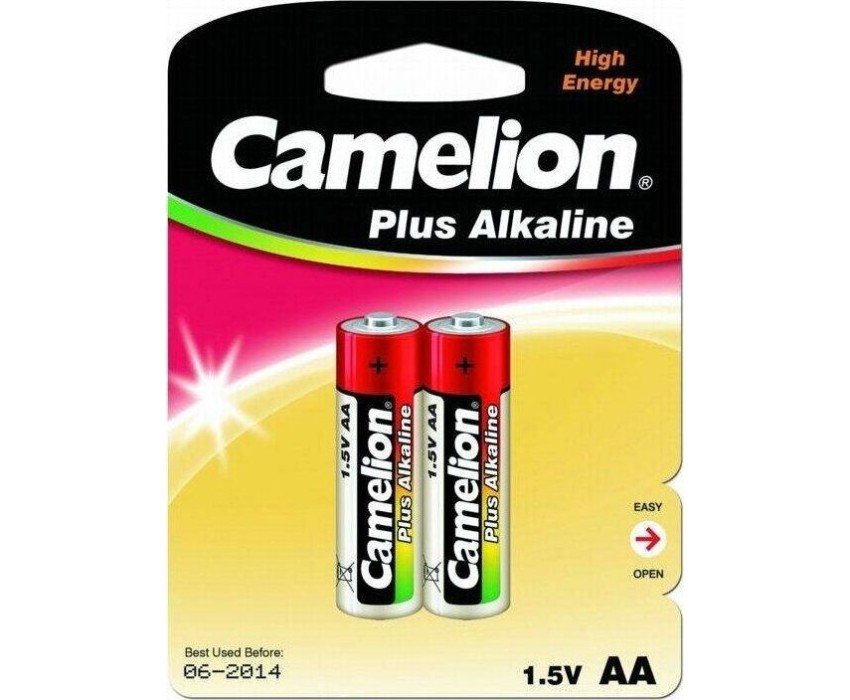 Батарейки алкалиновые Camelion..LR 6 .Plus Alkaline BL-2 (LR6-BP2, батарейка,1.5В) Батарейка Camelion LR6-BP2, напряжение 1,5В, емкость 2700мА*ч, кол-во в упаковке 2 шт., размер упаковки 84x114x11 мм, использовать при температуре от -18 до + 55 °C, хранить в сухом помещении при температуре от +15 до +25°C. Срок хранения 10 лет.