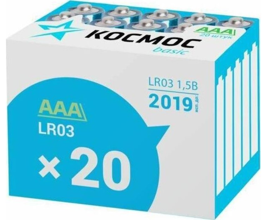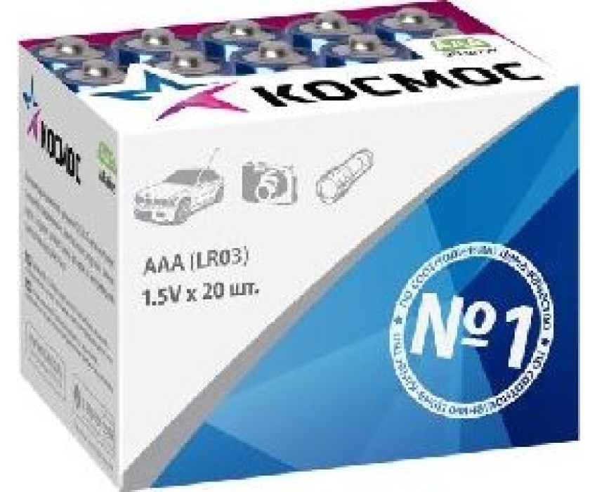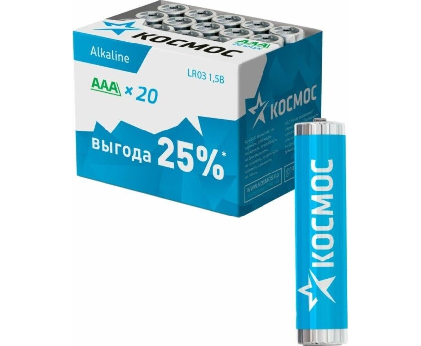 Батарейки алкалиновые, типоразмер - LR03 , напряжение - 1,5 В, для питания устройств с низким и средним потреблением энергии: фонари, мышки, клавиатуры, вспышки, пульты и пр., форма упаковки - коробка, в упаковке - 20 шт.