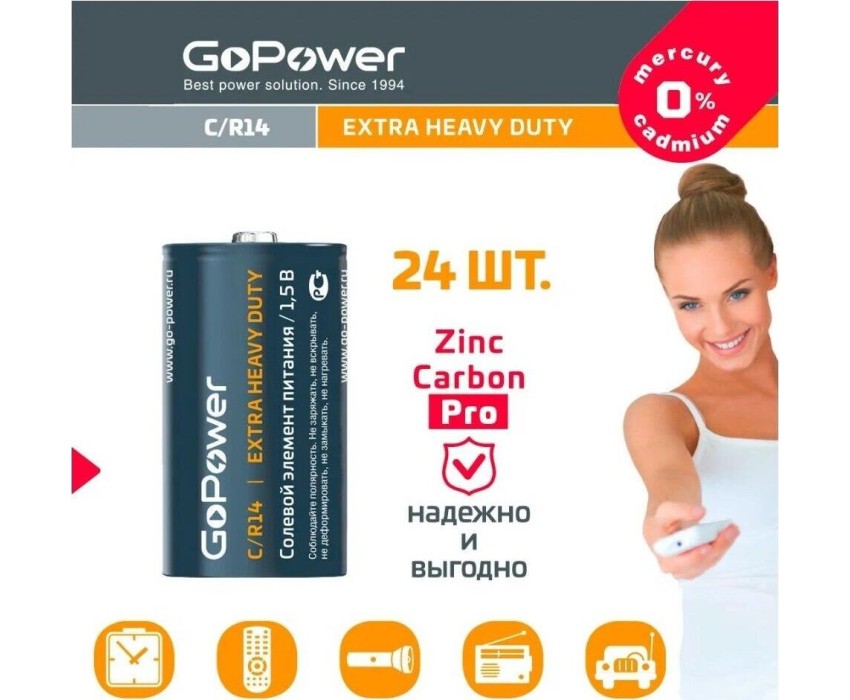Элементы питания GOPOWER (00-00015596) Extra Heavy Duty C / R14