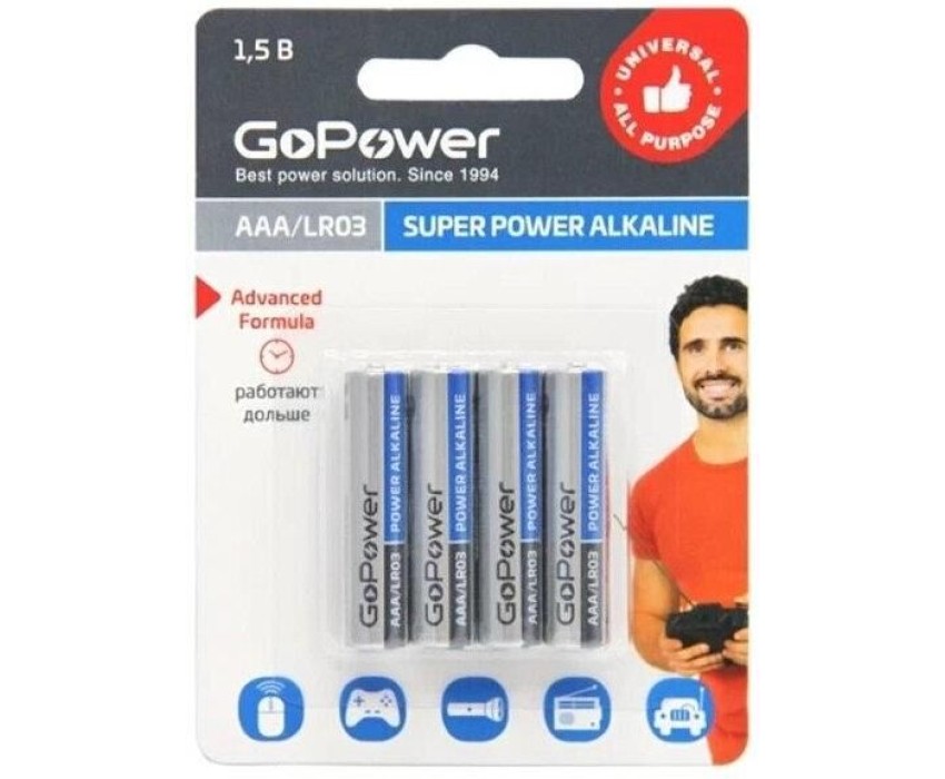 Элементы питания GOPOWER (00-00017749) LR03 AAA BOX20 SHRINK 4 ALKALINE 1.5V