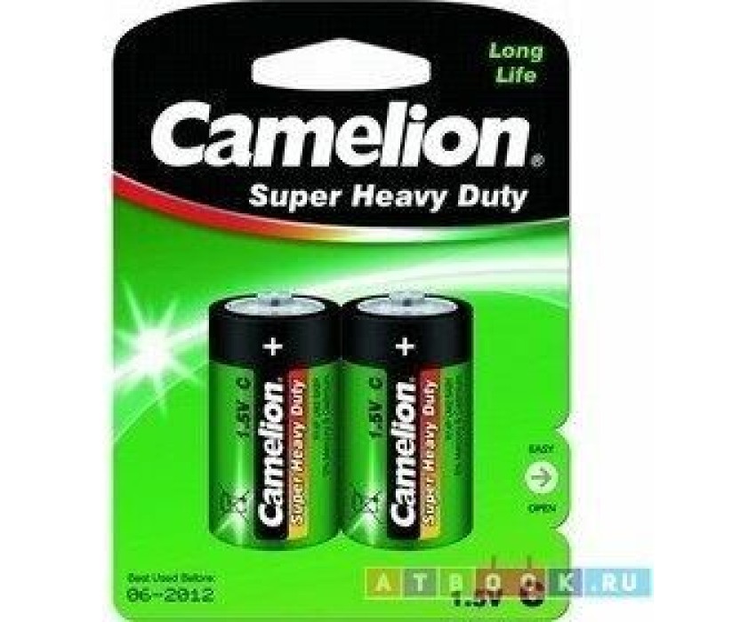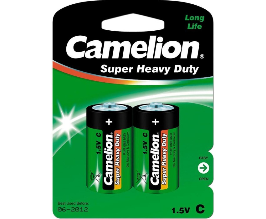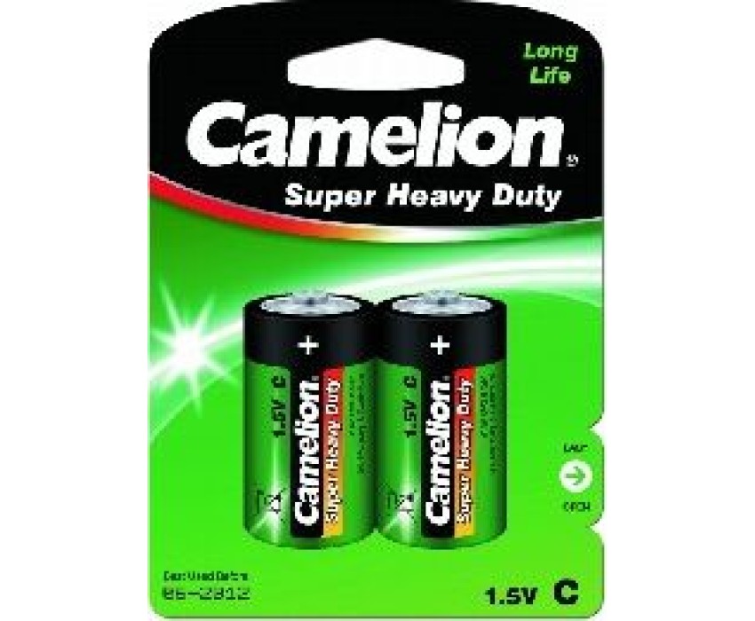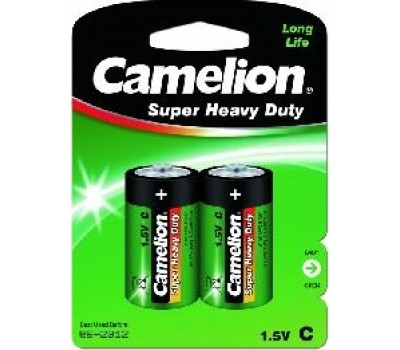 Батарейка солевая Camelion R14P-BP2G, напряжение 1,5В, емкость 3800мА*ч, кол-во в упаковке 2 шт., размер упаковки 84х114х27 мм,использовать при температуре от -18 до + 55 °C, хранить в сухом помещении при температуре от +15 до +25°C. Срок хранения 3 года.