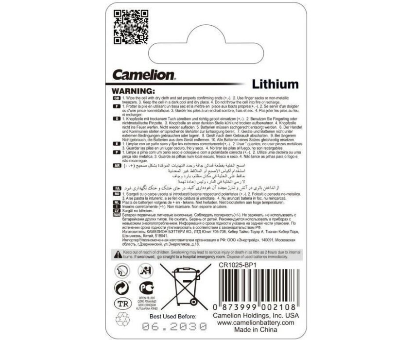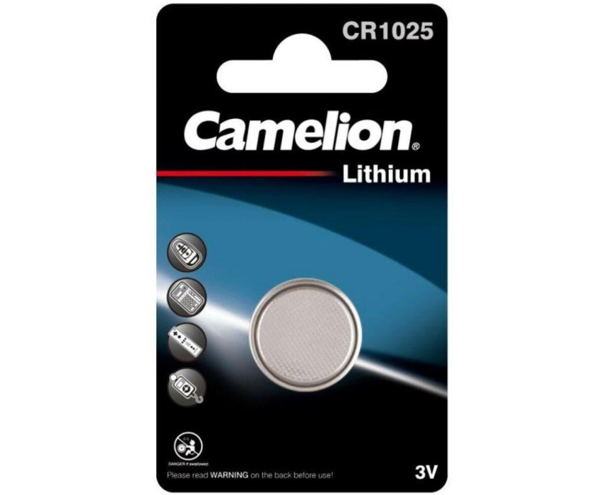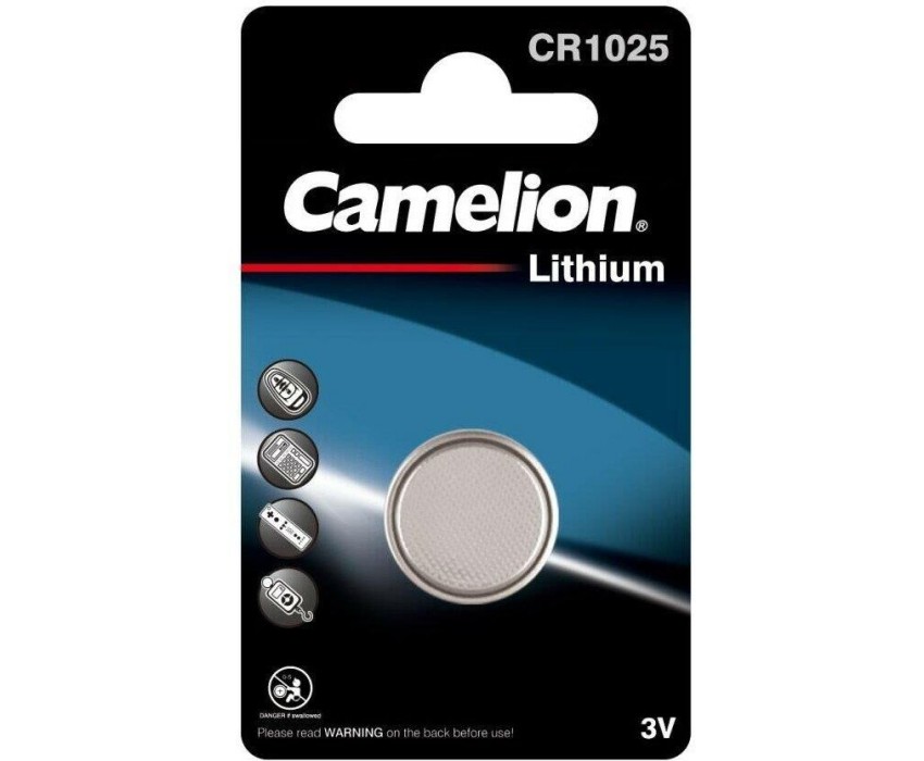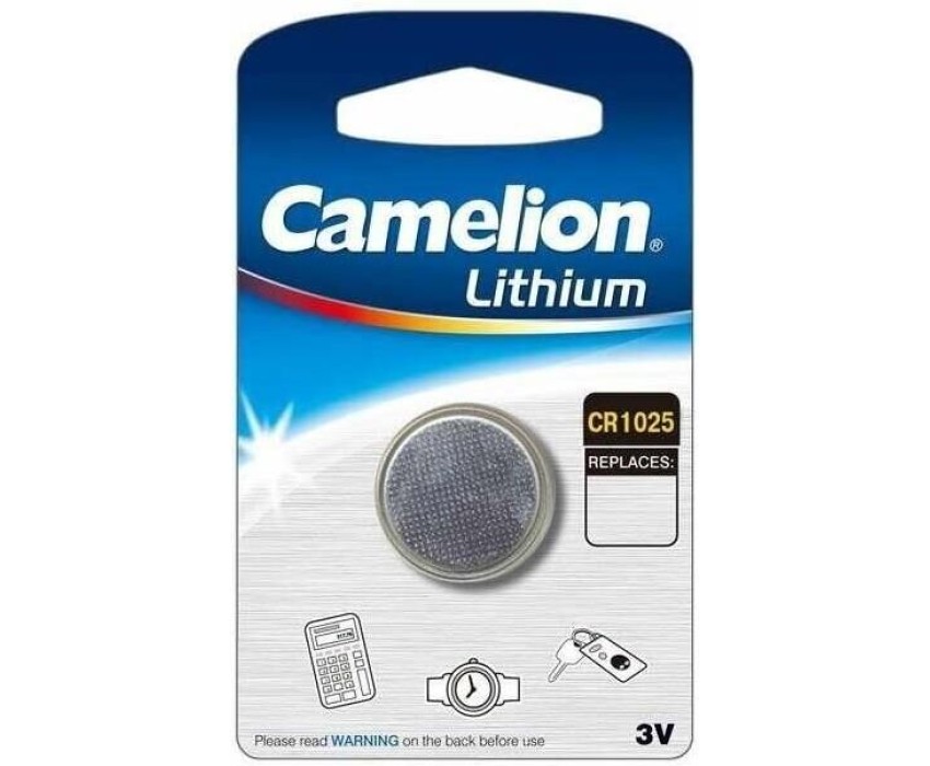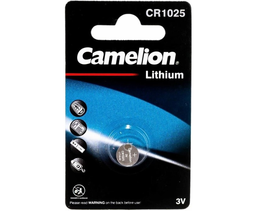 Батарейка литиевая Camelion CR1025-BP1B, напряжение 3В, емкость 30мА*ч, кол-во в упаковке 1 шт., размер упаковки 55x92x3 мм, использовать при температуре от - 20 до + 60 °C, хранить при температуре от +10 до +25 °C. Срок хранения 10 лет.