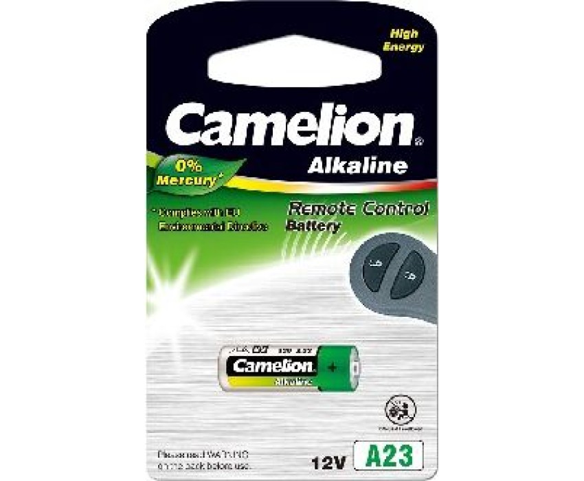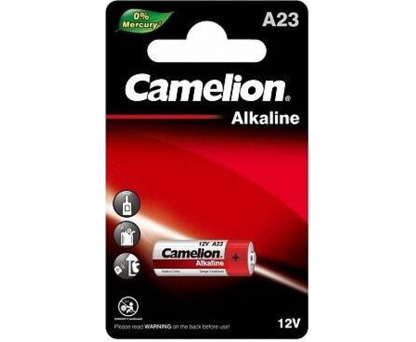 Батарейка алкалиновая Camelion LR23A BL-1 Mercury Free (A23-BP1, батарейка,12В), напряжение 12В, емкость 55мА*ч, кол-во в упаковке 1 шт., размер упаковки 56x92x10 мм, использовать при температуре от -18 до + 55 °C, хранить в сухом помещении при температуре от +15 до +25°C. Срок хранения 3 года.