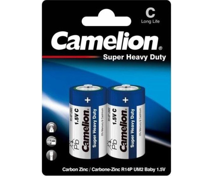 Батарейка Camelion R14-BP2B, напряжение 1,5В, емкость 3800мА*ч, кол-во в упаковке 2 шт., размер упаковки 84x114x15 мм, использовать при температуре от -18 до + 55 °C, хранить в сухом помещении при температуре от +15 до +25°C. Срок хранения 3 года.