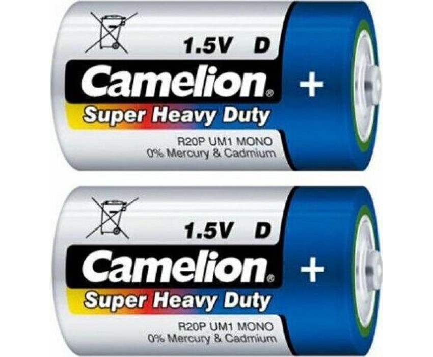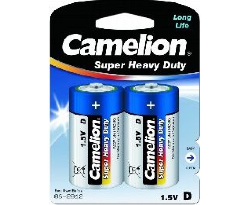 Батарейка Camelion R20P-BP2B, напряжение 1,5В, емкость 8050мА*ч, кол-во в упаковке 2 шт., размер упаковки 84x114x34 мм, использовать при температуре от -18 до + 55 °C, хранить в сухом помещении при температуре от +15 до +25°C. Срок хранения 3 года.
