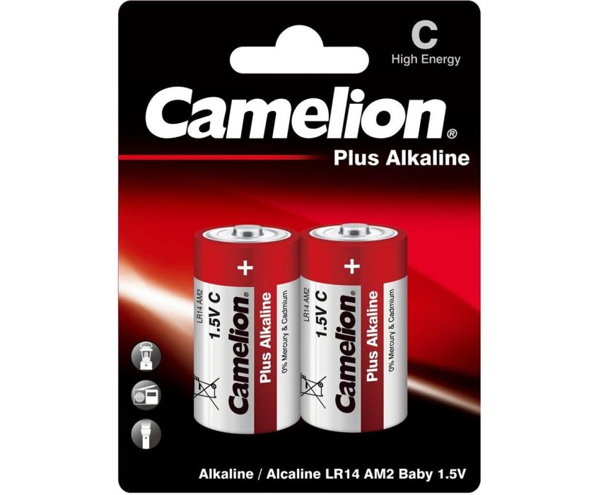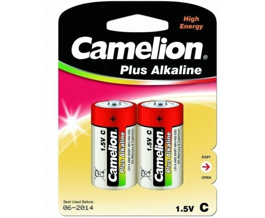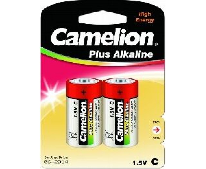 Батарейки алкалиновые CAMELION LR14 PLUS ALKALINE BL-2 (LR14-BP2, батарейка,1.5В) Батарейка Camelion LR14-BP2, напряжение 1,5В, емкость 8000 мА*ч, кол-во в упаковке 2 шт., размер упаковки 84x114x27 мм, использовать при температуре от -18 до + 55 °C, хранить в сухом помещении при температуре от +15 до +25°C. Срок хранения 10 лет.