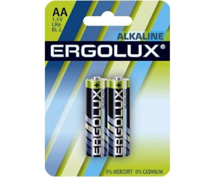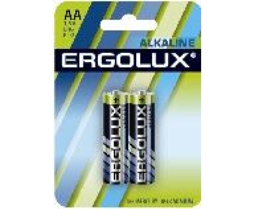 Батарейка Ergolux Alkaline BL-2 (AA - LR6, 1.5В), напряжение 1,5В, емкость 2700 мА*ч, кол-во в упаковке 2 шт., размер упаковки 84x114x11 мм, использовать при температуре от -10 до + 40 °C